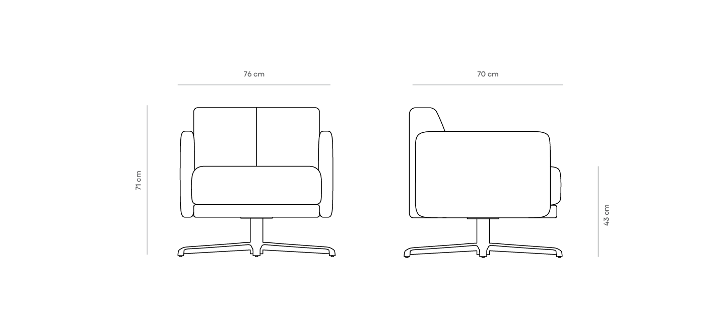 Composta por poltronas e sofá de visual leve, fluido e harmônico assim como o ritmo que se originou, se encaixando sutilmente em variados ambientes.