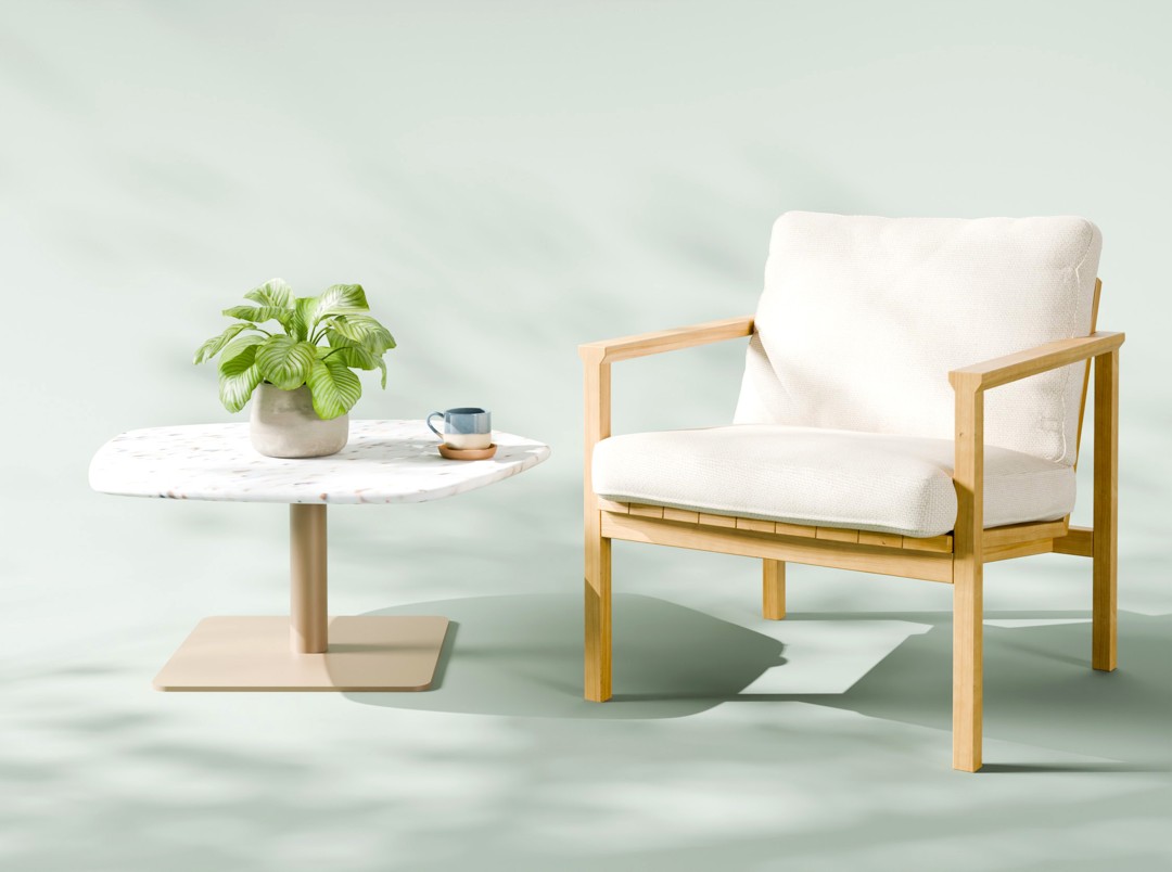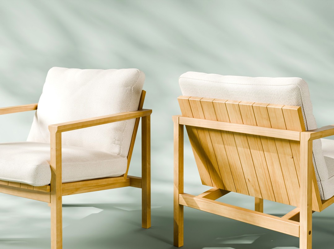 A Poltrona Less tem estrutura que acompanha os traços simples e minimalistas, com almofadas soltas bem confortáveis no assento e encosto, apoiadas sobre tampos de madeira maciça bem trabalhados com suaves ranhuras, evidenciando aspectos naturais do Pinus, especialmente selecionados para esta peça.